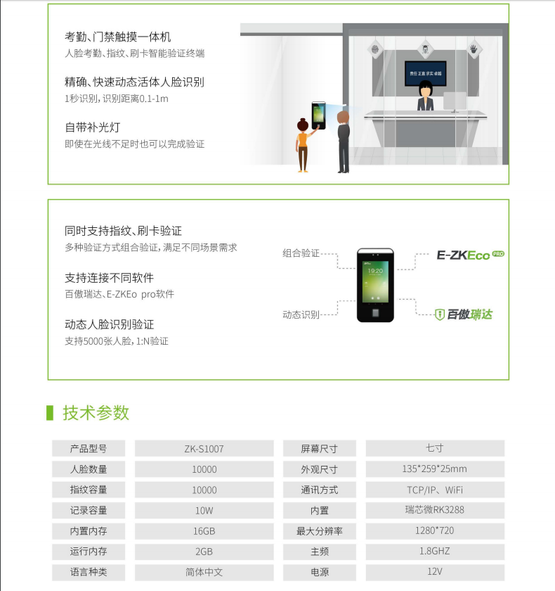 • ZKTeco熵基ZK-S1007系列動態人臉識別門禁